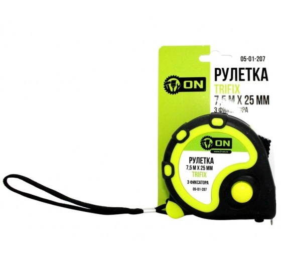 Описание Рулетка TRIFIX 7,5м х 25мм, обрезиненный корпус, 3 фиксатора